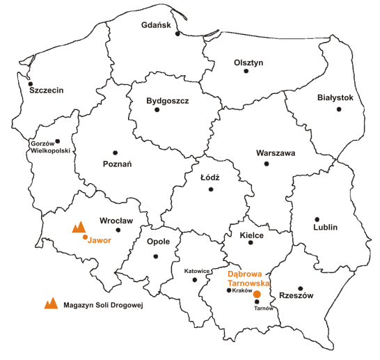 Nasza oferta soli drogowej konfekcjonowanej oraz produktów do zwalczania śliskości i uszorstniających nawierzchnie dróg, placów, parkingów, chodników, itp. skierowana jest do sieci handlowych, lokalnych dystrybutorów, zakładów komunalnych oraz firm zajmujących się zimowym utrzymaniem. Produkcja i sprzedaż soli drogowej konfekcjonowanej oraz produktów do zwalczania śliskości i uszorstniających jest prowadzona w zakładzie zlokalizowanym w m. Jawor (woj. dolnośląskie). W naszej ofercie posiadamy bogaty asortyment produktów: